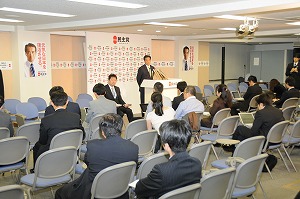 Okada also reported that a proposal to convene training sessions for freshman lawmakers belonging to both Houses of the Diet had been brought before a meeting of the party executive that had taken place the same day. He said, “We will carry out training sessions for all first-term Diet members from both the House of Representatives and the House of Councillors.” Okada went on to explain that the party planned to hold two training sessions before the end of the year, and that these would focus on compliance. He added that sessions would then be conducted on a regular basis during the ordinary Diet session next year, focusing on such topics as the appropriate way to conduct constituency activities, and campaigning knowhow.