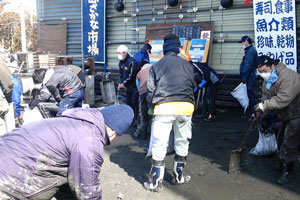 各隊ごとの作業は主に堆積した汚泥の撤去。これまでの状況分析からマンパワーを要するボランティアが必要になるのはこの週末からであるという私の予測は当たっておりました。当初は松島しか受け入れ体制がありませんでしたが、直前には石巻、塩竈のボラセンでも準備がととのい、現地で作業をすることができました。